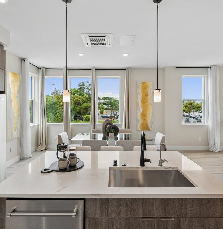 Step into this bright, open living space where rich hardwood floors flow seamlessly throughout. The soaring ceilings and expansive windows fill the room with natural light. The open design connects effortlessly to the kitchen, making daily life and entertaining feel effortless in this welcoming end unit townhome.